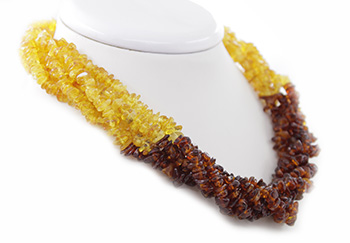 Добавим, что если вы оказались у прилавка магазина и сомневаетесь, подлинные ли перед вами бусы из янтаря, браслет или кольцо, то вам могут помочь еще пара советов. Во-первых, янтарь очень легкий. Во-вторых, пузырьки воздуха и трещинки внутри янтаря располагаются хаотично. В-третьих, янтарь не перегружен различными вкраплениями и выглядит просто и лаконично. Ну и наконец, натуральный янтарь не может стоить слишком дешево.