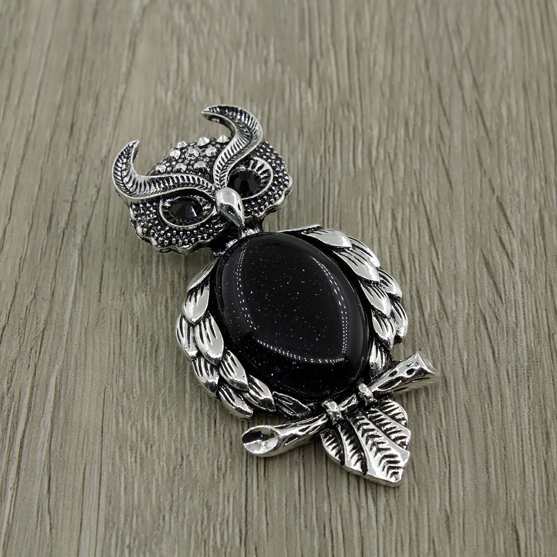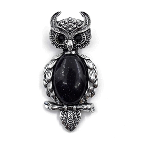 Брошь "Филин" Авантюрин синий